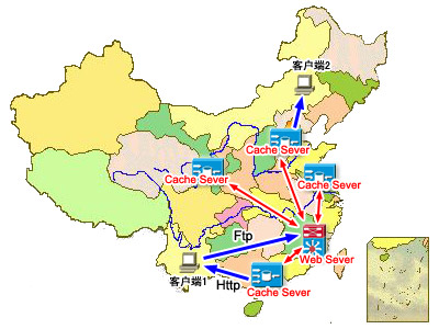 1、上图的每一个Cache Server中都有 Web server中已购买西部数码CDN加速器站点的一个“克隆版本”,使您的页面遍布各地,方便各地浏览者光顾。