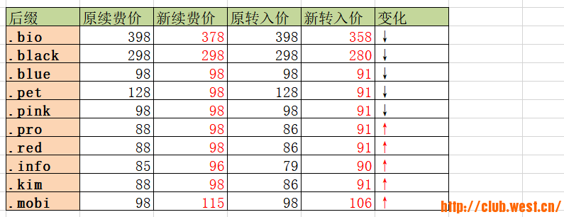 调整后缀:.bio/.black/.blue/.info/.kim/.mobi/.pet/.pink/.pro/.red